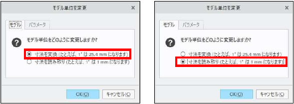 「モデル単位を変更」ダイアログボックスが表示されます。