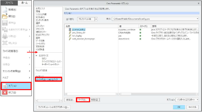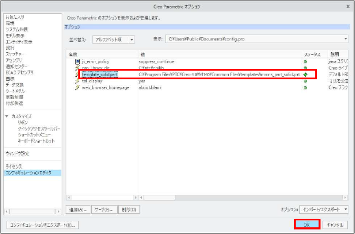 「Creo Parametric オプション」ダイアログボックスに、設定が追加されます。