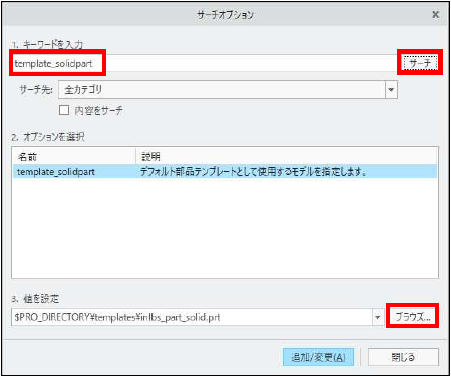 キーワード:template_solidpart をキー入力して「サーチ」をクリックします。