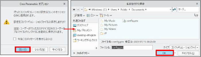 新しく「Creo Parametric オプション」ダイアログボックスが表示されるので、「はい」をクリックします。
